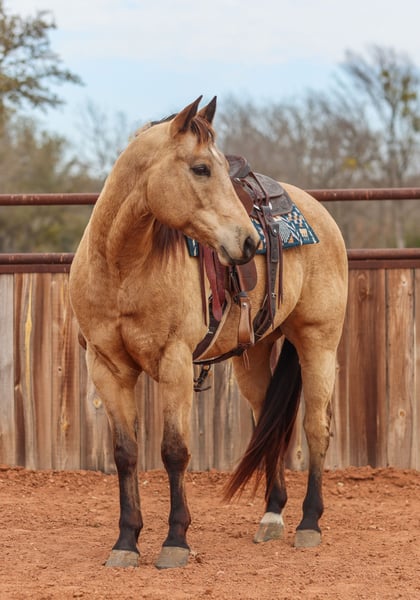 ℳ𝒶𝓇𝒸𝒽 ♦️𝐑𝐈𝐃𝐄𝐑'𝐒 𝐂𝐇𝐎𝐈𝐂𝐄♦️ Happening now thru MONDAY | MARCH 9th - Available EXCLUSIVELY on HorseBid's website! For more details and to register visit: www.Horsebid.com CONSIGNOR CONTACT: Bond Ranch & Performance Horses 615-854-6883 LOCATION: Ranger, TX BREED: QH REGISTERED: Yes REGISTERED NAME: Nacho Traffic Guy COLOR: Buckskin HEIGHT: 15.1 AGE: 9 GENDER: Gelding Nacho is a striking buckskin gelding with the kind of versatility, disposition, and eye appeal that make him a true standout. Quiet, kind, and exceptionally well-mannered, he is the type of horse that fits seamlessly into any program. Nacho has proven himself to be safe, sane and simple to ride in every situation. Fancy when it counts and gentle enough for the whole family. He handles cattle confidently, stays level-headed, and carries himself with the steadiness you want in a reliable partner. On the trail, Nacho is sure-footed and relaxed, traveling out willingly and taking new scenery in stride. In the arena, Nacho is well started on the head side and shows excellent promise as a versatile rope horse. He is responsive, soft in the bridle, and rides around with balance and style. Show pen ready and capable of stepping in to compete, he remains forgiving and suitable for riders of varying experience levels. Under English saddle, Nacho moves beautifully, carrying himself with balance and fluidity through his gaits. One of his greatest qualities is his exceptional ground manners — he is respectful, easy to handle, and a pleasure to be around in every setting. Beyond his talent and training, Nacho is incredibly sweet and personable. He genuinely enjoys attention and is easy to get along with, making him a favorite in the barn. He does not require daily riding to stay broke, maintaining his quiet, steady nature even with time off. With his eye-catching buckskin color, kind personality, and well-rounded résumé, Nacho is the kind of gelding that will make someone proud whether on the ranch, in the arena, or out on the trail.