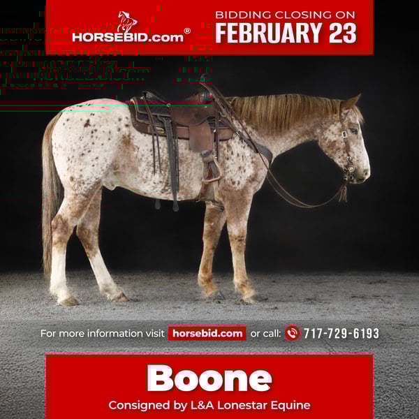 💎 𝐓𝐇𝐄 𝓓𝓲𝓪𝓶𝓸𝓷𝓭 𝐒𝐇𝐎𝐖𝐂𝐀𝐒𝐄 💎 Happening now thru MONDAY | FEBRUARY 23rd - Available EXCLUSIVELY on HorseBid's website! For more details and to register visit: www.Horsebid.com CONSIGNOR CONTACT: L&A Lonestar Equine 717-729-6193 LOCATION: Needmore, PA BREED: Quarter Horse REGISTERED: No REGISTERED NAME: n/a COLOR: Appaloosa HEIGHT: 15.1 AGE: 9 GENDER: Gelding Family Friendly • Trail Proven • Arena Ready This handsome 9-year-old, 15.1hh Appaloosa gelding is the perfect all-around partner for anyone searching for a safe, enjoyable, and steady horse. He is gentle, dependable, and has a sweet, people-loving personality. Highlights: • Outstanding trail horse; confident, sure-footed, and loves being outdoors • Calm and consistent • Rides well in the arena with a good whoa and an easy, responsive handle • Very much more whoa than go—laid-back, steady, and comfortable for all levels • Patient, forgiving temperament and a true best-friend type Whether you want a dependable trail partner, a safe mount for newer riders, or a kind gelding to enjoy around the farm, this horse checks every box. He is ready to step into his next home and make someone very happy. For any questions please feel free to contact Lane at 717-729-6193!