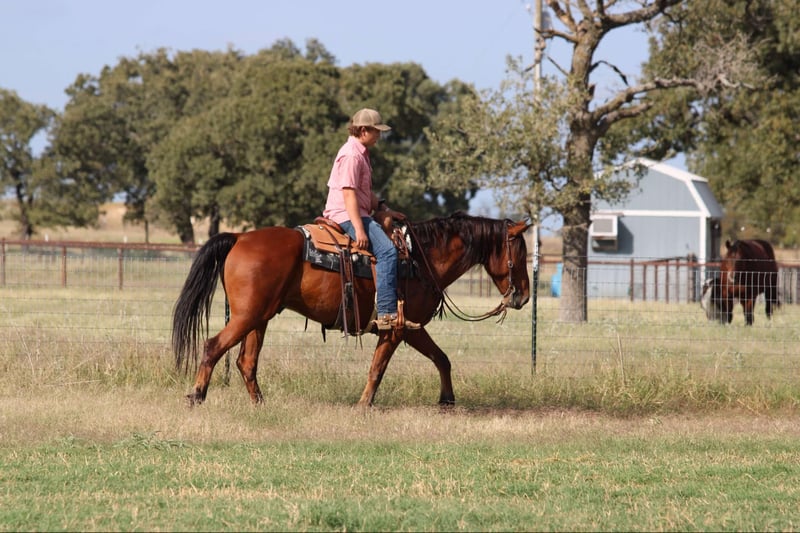 ONLINE AUCTION Place your bids at www.PlatinumEquineAuction.com Starting Bid $3500 Auction ends December 1st, 2024 Need a new saddle? Check out White Rock Saddles on our website or Facebook! Tango has a heart of gold and is as quiet one could hope to find. He always wants to be your best friend, and is sucker for love and attention. He is a grade 7 year old gelding standing at 15.1hh. Tango is quiet to be around, good with his feet, and a gentleman on the ground. He’s been exposed to almost anything you can imagine including whips, tarps, flags, ropes, or whatever else might look strange to a horse. He wants to ride slow, and relaxed. He picks up both leads nicely and lopes off with ease. Above all, Tango really shines, and excels being out on the trails. He’s calm, steady, and quiet handling himself in rough country, maneuvering with ease over bridges, bogs, crossing water, etc… Tango has been ridden by all levels of riders, and is forgiving of mistakes made by those who are new, helping to build their confidence. He would really go far in trail versatility classes or would help you to capture the eyes emotions carrying a flag. Whether you’re on the ranch, and in the arena, everyone notices him by his looks, and quiet demeanor. He is the best, and one of the favorites in the barn. Tango is located in Lipan Texas.We are more than willing to help with all shipping needs, we ship all over the country as well as Hawaii and Canada. For more information please call Makenna Hartzel 817-659-3778. ONLINE AUCTION Place your bids at www.PlatinumEquineAuction.com Starting Bid $3500 Auction ends December 1st, 2024 Need a new saddle? Check out White Rock Saddles on our website or Facebook!