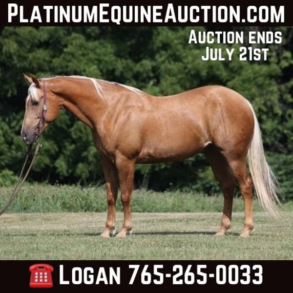 ONLINE AUCTION Place your bids at www.PlatinumEquineAuction.com Starting Bid $3500 Auction ends July 21st, 2024 Need a new saddle? Check out White Rock Saddles on our website or Facebook! ARC Jacs Gold Charm is living proof that Dream horses do exist! Talk about a horse that gets ALL of the looks where ever he goes!!! Jac is a super stout built Golden Palomino 2017 Registered AQHA gelding standing around 15.1hh. I’v had Jac since back in the winter and he has been used to around cattle, pasture roped and used to doctor as well. He has been ridden down the highways, we have had him in town and he is very traffic safe. Jac is great on trails and he will cross creeks, ditches, logs and navigate rough rocky areas. He has a smooth jog, a VERY VERY nice easy to set lope, a good stop, turns a circle both ways and backs with ease! He has been exposed to all kinds of wildlife such as deer or turkey or other animals like cows or dogs and will go anywhere that he is asked too. He has been rode many miles in the mountains of Eastern Kentucky and encountered every obstacle possible on the trail. He will go up or down even the steepest slopes, across deep creeks, over downed trees, and over all types of rough terrain while still being sure footed. Jac is a gentle, laid back type of horse that is not in a hurry and would be a great horse for the whole family! Jac is not cinchy, cold backed, does not crib or weave. Located in Level Green, KY. Feel free to call Moore Trained Horses Logan 765-265-0033 with any questions. ONLINE AUCTION Place your bids at www.PlatinumEquineAuction.com Starting Bid $3500 Auction ends July 21st, 2024 Need a new saddle? Check out White Rock Saddles on our website or Facebook!