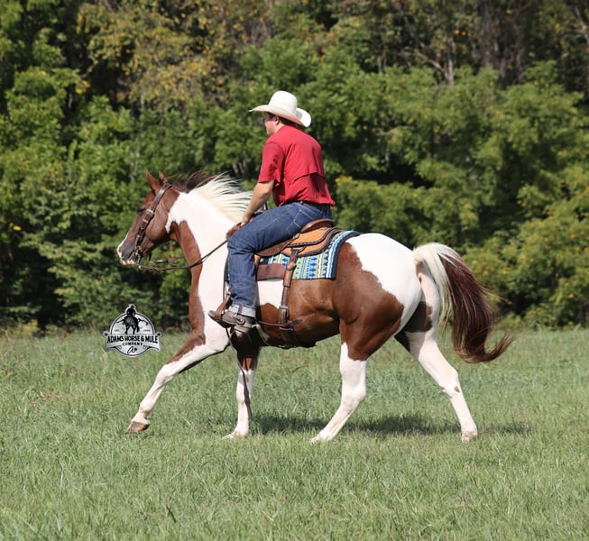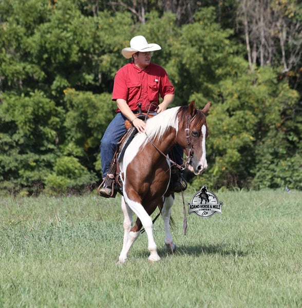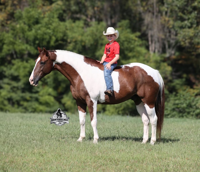 Go to visit our website for more pics and a video www.AdamsHorseAndMuleCo.com AHAMC has been in the horse business and sold horses over the internet since 2005. We have a long track record of success with hundreds of happy customers. We work hard to match riders with the correct horses and specialize in beginner safe, family friendly horses that have been used and checked out by our family! We can set up transportation anywhere in the US and look forward to working with you. Meet Tonto, a super stout built paint gelding that is standing around 15.1hh. He will weigh 1300lbs, he is 8 years old and he has all the good looks, and (the best part) the mindset that anyone could ask for! Not only does he look cool, he has all of the other boxes checked as well… he is Mr. Personality, as friendly as they come, loves attention and is very calm natured. Tonto has been ridden by every member of our family all the way down to our 6 year old daughter and he will be the perfect horse for the whole family to enjoy! He has been ridden around the ranch, checked cows and pushed them around. Tonto is great on trails and he will cross creeks, ditches, logs and navigate rough rocky areas. He has a smooth jog, one of the slowest and softest lopes that you will find, a good stop and reins around as well! He has been exposed to all kinds of wildlife such as deer or turkey or other animals like cows or dogs and will go anywhere that he is asked too. He has been ridden many miles in the mountains of Eastern Kentucky and encountered every obstacle possible on the trail. He will go up or down even the steepest slopes, across deep creeks, over downed trees, and over all types of rough terrain while still being sure footed. Tonto is not cinchy, cold backed, does not crib or weave. He is a super cool horse that anyone is sure to love!!! Feel free to call Eric 606-308-2461 with any questions.