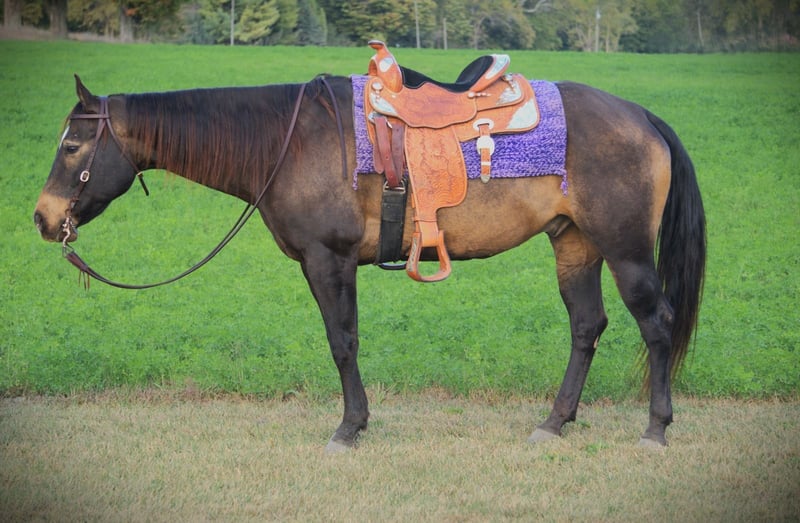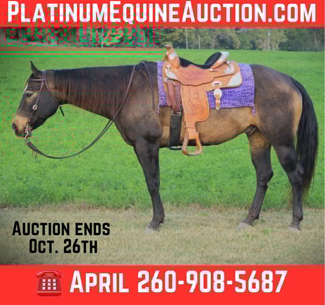 ONLINE AUCTION Place your bids at www.PlatinumEquineAuction.com Starting Bid $3500 Auction ends October 26th, 2025 Need a new saddle? Check out White Rock Saddles on our website or Facebook I’m privileged to offer you the opportunity to own this “unicorn” gelding! Meet “Kid”. Kid is a 8 year old Quarter Horse gelding, standing a stout 15.2 hands tall, weighing in around 1,300 pounds. Kid exceeds all expectations in every direction. He is a family “must have”! Kid is suitable for absolutely any level of rider! If you can hold the reins, you can ride this gelding! He loves attention, he is the first at the gate, and is very gentle. Kid has great ground manners which makes him ideal for the entire family to enjoy! He doesn’t get worked up about anything! Kid is broke-broke! This honest gelding will take you in any direction, wherever you need to go. His phonomal disposition and excessive willingness to please makes him the perfect horse for anyone! He is 100% desensitized with anything you could imagine, balls, tarps, flags, farm equipment, obstacles, cows, dogs and semis. Kid is 100% TSS. He has been ridden on main highways and through town with flags whipping and never misses a beat. Kid is 100% neck reined. He is a master on the trails! Kid loves water and is always confident in any situation you put him in on the trails. He crosses logs, over bridges, down the steepest hills, and up the roughest terrain with ease. You can ride kid bareback, western, double, or english. He stands great for the farrier, and to be bathed. He hauls great without hesitation. You can let this gelding sit for 6 months, pull him from the pasture, jump on and go, hes never fresh. He has no vices or bad habits. He has been on countless over night camping trips, and will stay tied to a picket line all day and night with ease. He rides out alone or with large groups of people and strange horses. Kid has no spook or buck and gets along great with other horses. Kid is no stranger to a hard days work, he will always put in 100%. Kid is definitely a must to come check out! Please contact for more information or to set up a visit! I can arrange our own personal transportation to in sure Kid gets to your facility safely. Located in Saint Joe, IN For more info contact April with Mid-West Performance Horses 260-908-5687. ONLINE AUCTION Place your bids at www.PlatinumEquineAuction.com Starting Bid $3500 Auction ends October 26th, 2025 Need a new saddle? Check out White Rock Saddles on our website or Facebook