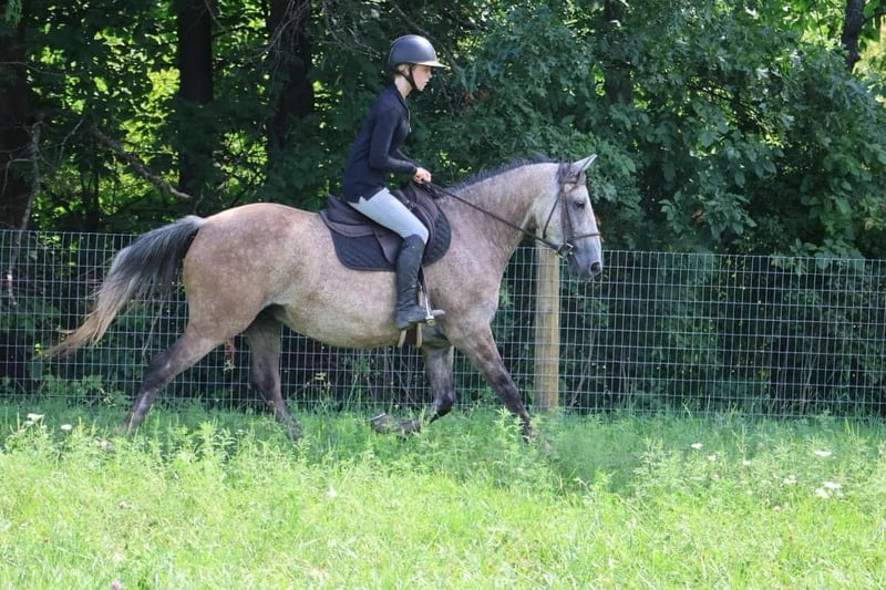 ONLINE AUCTION Place your bids at www.PlatinumEquineAuction.com Starting Bid $3500 Auction ends September 15th, 2024 Need a new saddle? Check out White Rock Saddles on our website or Facebook! We are proud to introduce Valentino! He is a stunning 7 year old gelding. He is covered head to toe in dapples. He is an Andalusian QH cross who stands at 15.2hh. Valentino has lovely movement. He has a great walk, a floaty trot, and an adjustable canter. He has the most beautiful mane and tail. Valentino is the whole package with his noble appearance, intelligent mind, and inquisitive demeanor. He bonds deeply with his person. Valentino is the type who will work all day, whether it’s in town, in the arena, or on the trails. He has great hooves and a thick bone structure. Valentino was started on the ranch working the cows, completing farm chores and checking fences. He knows how to move on and off seat and leg pressure. He slides right into his stop. He is trained through 1st level dressage and knows all lateral movements. Valentino has recently been started over fences and attended a hunter pace. He’s absolutely fantastic out in the fields and will jump in beautiful form. He has also done quite a few trail obstacle courses and navigates them with ease and finesse. Valentino has the brains, the beauty the sense, and versatility to excel in just about anything! He is that all around horse! Located in Howell Michigan 48855. Call Ellesse Schwartz for more information 248-390-6831. ONLINE AUCTION Place your bids at www.PlatinumEquineAuction.com Starting Bid $3500 Auction ends September 15th, 2024 Need a new saddle? Check out White Rock Saddles on our website or Facebook!