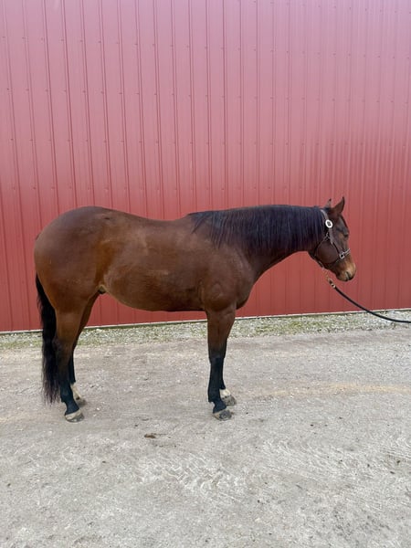 𝐉𝐀𝐍𝐔𝐀𝐑𝐘 ⭐️𝑨𝒍𝒍 𝑺𝒕𝒂𝒓 𝑳𝒊𝒏𝒆𝒖𝒑⭐️ Happening now thru MONDAY | JANUARY 26th - Available EXCLUSIVELY on HorseBid's website! For more details and to register visit: www.Horsebid.com CONSIGNOR CONTACT: Long Range Stables 765-577-1433 LOCATION: Danville, IN BREED: Quarter Horse REGISTERED: Yes REGISTERED NAME: Rhythmic Chip COLOR: Bay HEIGHT: 15.3 AGE: 9 GENDER: Gelding Meet Rhythmic Chip “Bucky,” a 2017 bay gelding who has been a cornerstone of our program since he was a yearling. Bucky started his career trail-riding all over Indiana before entering our lesson and 4-H/Open Show program as a 4-year-old, where he has been successfully shown every year since. He has earned multiple wins across Western and English events and represented at State in both disciplines. Most recently, he competed in Ranch classes at the 2025 NOSHA Worlds, placing multiple times in the Top 5. Bucky is the definition of a well-rounded, all-around gelding. He confidently performs walk, trot, extended trot, and lope; stops, backs, spins, and side passes; and maneuvers over logs, drags logs, and ropes the dummy. Bucky is stalled in the evenings and turned out during the day with nine other horses. He’s easy to catch—we routinely send small kids to bring him in from the pasture. He is best suited for an intermediate rider or for a rider working within a consistent training program where he has a job and stays engaged. Bucky would be an outstanding addition to a Western/ranch show program, a 4-H/Open Show home, or for someone wanting a versatile, broke, and proven partner. He is completely sound and up to date on vaccinations, farrier care (front shoes), and had his teeth floated this spring. Bucky is ready for his next home and next chapter—one where he’ll undoubtedly continue to shine.