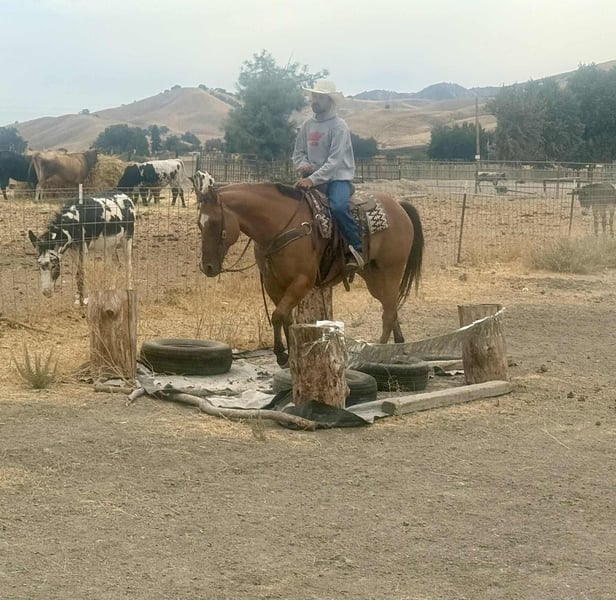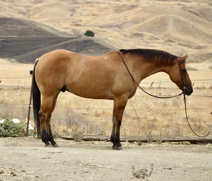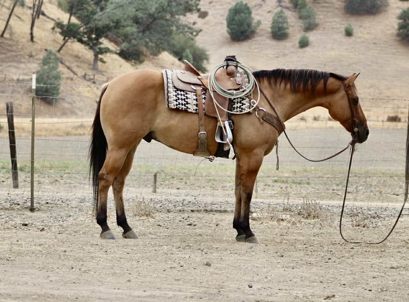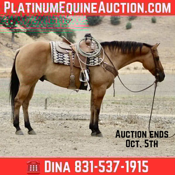 ONLINE AUCTION Place your bids at www.PlatinumEquineAuction.com Starting Bid $3500 Auction ends October 5th, 2025 Need a new saddle? Check out White Rock Saddles on our website or Facebook Cappi is an 8-year-old dun beautiful gelding standing 15.1 hands and weighing around 1,200 lbs. He’s being offered here on behalf of a client who purchased him as a rope horse prospect, but has since decided she would rather invest in a finished rope horse. That puts a very nice, broke gelding on the market for someone who’s looking for a steady, versatile partner with the foundation to go any direction. This gelding has been in the same hands since a yearling, and it shows in the way he carries himself. He’s honest, dependable, and always ready to saddle up and go have fun. He’s spent his time packing hunters through rough country, handling real ranch chores, and traveling across mountain and canyon trails without hesitation. He’s the kind that doesn’t melt in bad weather, doesn’t spook at shadows, and doesn’t make things complicated — he just goes forward with a calm, willing attitude. Cappi has been introduced to the rope, will drag logs and has had a few calf’s drug of him , and takes to new jobs willingly. He travels well and collected, with plenty of size and bone to make a head horse with more seasoning. He goes down the trail quiet and steady, crosses water without a blink, and will step over or up anything you put in front of him. He’s already been over obstacles and handled them without fuss. He is good to ride down country roads or busy streets he is not phased by cars, truck, or wildlife .He’s the same to be around on the ground — easy to catch, stands quiet, hauls like a pro, and stays the kind of horse you look forward to saddling everyday. Cappi isn’t being offered because of any holes or problems — only because his owner decided she wanted a finished rope horse. That means someone else has the opportunity to step into a well-broke gelding who has been honestly used and handled, and who has the mind and body to go on with. Contact: Dina with Longhorn Ranch 831-537-1915 Located in Paicines, CA with shipping available anywhere in the US. ONLINE AUCTION Place your bids at www.PlatinumEquineAuction.com Starting Bid $3500 Auction ends October 5th, 2025 Need a new saddle? Check out White Rock Saddles on our website or Facebook