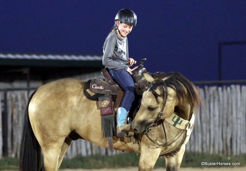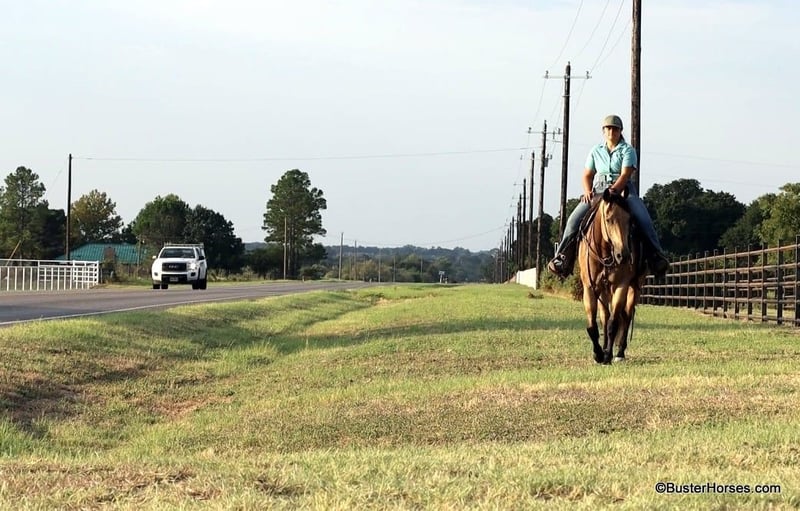 ONLINE AUCTION Place your bids at www.PlatinumEquineAuction.com Starting Bid $3500 Auction ends September 8th, 2024 Need a new saddle? Check out White Rock Saddles on our website or Facebook! “Hollywoods Playright” – 15.1H, 2016′ buckskin AQHA gelding. Hollywood is a GORGEOUS solid, safe, solid guy. He is the prime-age and ideal size that everyone is looking for and he is about as easy to ride as a horse comes. He has smooth, easy gaits, and that simple, one-hand, old-school ranch horse style handle that just about anyone can get alone well with! He is smooth at the walk and trot and incredibly soft and smooth to lope, very comfortable even for new riders. This guy is so pleasant to be around – everyone who has ever handled this horse or sat on him, absolutely adores him. He is relaxed, but still responsive, just a blast to ride. Hollywood has been used outside on a ranch and has been roped off of outside on the ranch, and also in the arena on the head side. Hollywood stands like a statue for mount and dismount and is so relaxed and easy going, he rides to your level and is happy just to cruise around if that is all you want to do! He is also willing to work and will glady trot and lope circles for just about any style and level of rider and naturally has a big stop and is really quiet and simple to guide around. We have used this guy for total beginners and also for riders just coming back from a bad experience and he is a great confidence builder and makes everyone feel right at home on his back. For advanced riders, he will ride up to your level and is very fancy broke and can be feely and responsive when asked to be. He is as pure as they get and very genuine – he stays together, honest, and rides around – even with his bridle off. He is very personable, sweet, and kind! Hollywood has been tons and tons of miles outside but has also been hauled to many events and acts like an old seasoned rodeo horse. He loves trail riding in a group, and is just as comfortable out alone with his rider. He enjoys hopping in the trailer and going to new places and he loves riding in traffic around town. Hollywood was just shod this week. His teeth were also just done by an equine dentist this past spring and at the same time he had his sheath cleaned, his ears preemptively treated for ticks, and he was also power packed wormed. Hollywood has great feet and goes really well barefoot – if his new owner prefers him to be barefoot, we can have his shoes pulled, prior to him heading to his new home. He will arrive at his new home up-to-date and ready to go to work! To see additional videos, go to our website: BusterHorses.com or our Facebook page Buster Horses. Please call anytime for more information at 214-605-7174 Hollywood is located in Weatherford, TX – one hour from Dallas / Fort Worth International Airport. He is an easy day trip or fun overnight trip to come try out, from anywhere! We are experienced, knowledgeable sellers, and we can help with quickly arranging affordable shipping to any buyer’s location – we have experience shipping worldwide – including regularly to Hawaii, Canada, Mexico, Europe, and South Africa. ONLINE AUCTION Place your bids at www.PlatinumEquineAuction.com Starting Bid $3500 Auction ends September 8th, 2024 Need a new saddle? Check out White Rock Saddles on our website or Facebook!
