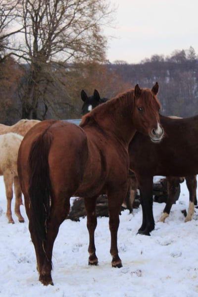 Ausdrucksstarker QH Hengst red dun wird 10-jährig (2016 geboren) ca. 1,44m groß 5 Panel n/n und IMM negativ getestet Wallstein ist ein sehr schicker, kompakter Hengst mit harmonischem Körperbau und geraden Beinen. Besitz ein schönes, feines Köpfchen, dichten Behang und viel Ausdruck. Er war bisher im Deckeinsatz (Natursprung) und wurde noch nicht geritten. Stand die letzten Jahre das ganze Jahr über problemlos zusammen mit Stuten und ihren Fohlen im Herdenverband und steht aktuell mit zwei Junghengsten im Laufstall neben Stuten. Im Sommer 24/7 Weidenhaltung gewöhnt, durch wechselnde Koppeln an Straßen-, Wald und Forstwegen sind ihm Straßenverkehr, landwirtschaftliche Geräte und Puplikumsverkehr, sowie das geführte Versetzen am Halfter zusammen mit der Herde, bekannt. Seine Abstammung mit Walla Walla Dun It (Hollywood Dun It) kann sich sehen lassen und auch mütterlicherseits finden sich große Namen, wie Great Resolve (Great Red Pine) & High Brow Hickory. Klug, fein und wendig gibt er sein will to please auch an seine Nachkommen weiter. Nachzuchten von ihm stehen aktuell noch am Hof und können bei einem Besuch mit angesehen werden.