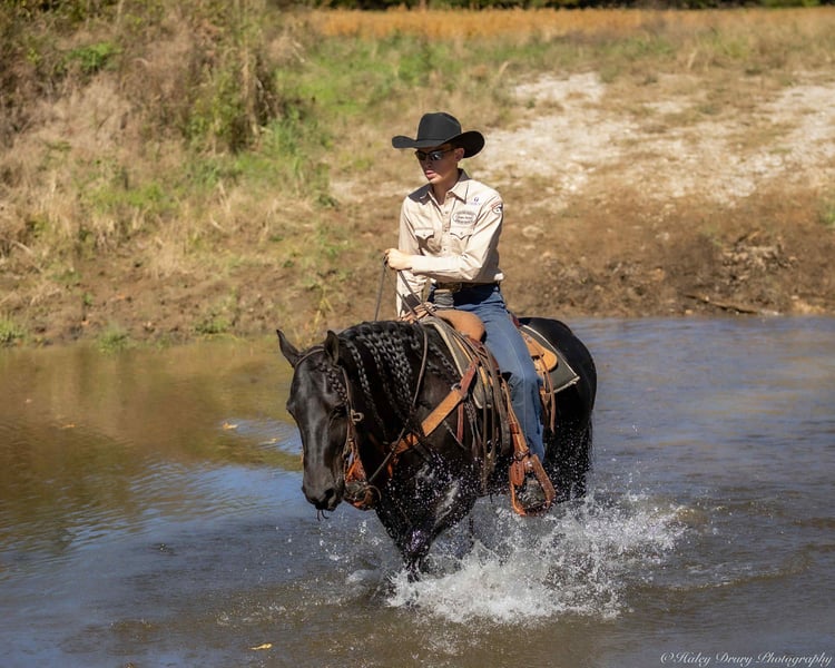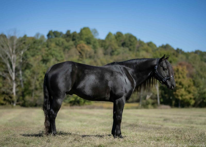 ⚜️𝐓𝐇𝐄 𝐅𝐀𝐋𝐋 𝐇𝐄𝐑𝐈𝐓𝐀𝐆𝐄 𝐂𝐋𝐀𝐒𝐒𝐈𝐂⚜️ Happening now thru MONDAY | NOVEMBER 3rd - Available EXCLUSIVELY on HorseBid's website! For more details and to register visit: www.Horsebid.com CONSIGNOR CONTACT: Jamie Thomason 270-772-1706 LOCATION: Auburn, KY BREED: AQHA REGISTERED: Yes REGISTERED NAME: IMA DRIFTWOOD 1602 COLOR: Smokey Black HEIGHT: 14.2 AGE: 9 GENDER: Stallion The perfect horse! Family friendly, safe for anyone, the kind everyone wishes they had in their barn. Elvis is as versatile as he is dependable. Whether you’re heading out for a relaxing trail ride, letting the kids climb on for an afternoon adventure, or backing into the box, he’s ready to go to work with a calm, steady attitude. He’s been used for lessons, carried non-horsey guests, tie-down roping, heading, heeling, breakaway, and ranch work, proving himself as a solid, trustworthy partner in and out of the arena. A true gentleman through and through, he handles every situation with patience and confidence. This horse isn’t just another mount — he’s the kind you can count on day after day, a loyal partner, and a true friend. Elvis is a 9 yr old, Smokey Black, AQHA Stallion, standing 14.2 hands. A deluxe trail mount, Elvis will go absolutely anywhere you point him. Zero spook & Confident, sure-footed, and steady, he’s been ridden on countless trails and overnight camping trips, always taking everything in stride. Whether you’re winding through wooded paths, crossing creeks, climbing hills, in town, through traffic or riding out across open country, he moves out willingly and safely for riders of any level. He’s the kind you can relax and enjoy the ride. In the arena, Elvis had been hauled to every setup. Indoor & outdoor, even to ranch rodeos. On the head side, been used for 12 point ropings and down. Good for the 8 point ropings on the heel side & ready to haul in the tie down & breakaway roping. Elvis has been used on a seed stock cattle operation his entire life. Accustomed to all aspects of ranch work. Tagging & doctoring calves, gathering strays, & working along stock dogs. Always honest & an asset to his partner. Everyone loves Elvis! He has been the spotlight of several senior photos sessions, this guy belongs on the movie screen! He’s gorgeous, “The King” of the barn. Visitors always stop by his stall to admire his beauty. We are often asked why Elvis was kept a stallion. You wouldn’t know he was a stallion. He is quiet, pastures, stalls, hauls, and stands tied along side mares. He passes the same calm, quiet, willing demeanor, as well as stunning looks on to his foals. He carries a dilute gene, was bred to a few select mares, and has sired palomino roans, bay roans, sorrels, and black foals. Each and every one have possessed the same great qualities that we admire in Elvis. If owning a stallion or breeding isn’t in your future plans, there are no contraindications in having Elvis gelded if you wish. If you would like to meet Elvis prior to adding him to your family, we’d be glad to have you. Arena, trails, & live cattle available. Elvis sells current on all cares, PPE’s welcome, & we can provide assistance in arranging transportation to anywhere!