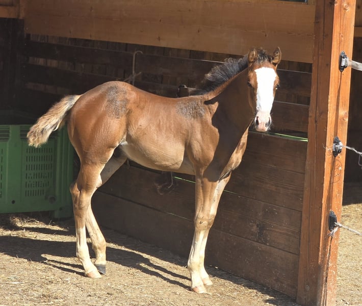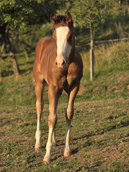 Disponible pour un nouveau foyer, un poulain vraiment magnifique. Très bien construit, très calme et amical. Il apportera beaucoup de bonheur à son futur propriétaire. Toutes les chances de devenir un excellent cheval de concours un jour ou simplement votre partenaire de tous les jours. Également intéressant pour la reproduction.