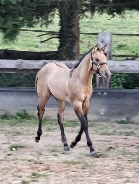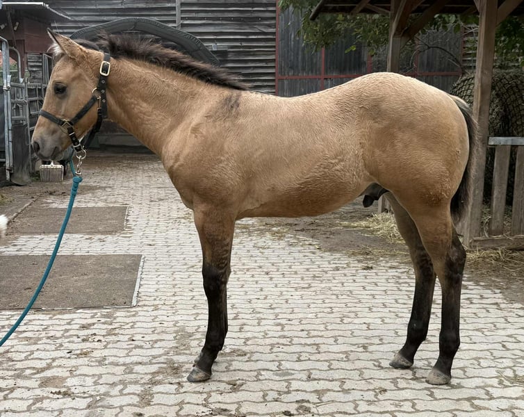 Roosters Bexx On Ice - bildhübscher dunskin Quarter Horse Hengst (5.25 geboren, voraussichtliches Endmaß ca. 150 cm) bringt alles mit, was man sich von einem Nachwuchspferd wünscht: Ein korrekter, kompakter und kräftiger Körperbau, eine gute Bemuskelung und ein gesundes Fundament machen es zu einem echten Allround-Talent mit Zukunft. Der kleine Charmeur wächst artgerecht im Herdenverband mit anderen Jungpferden auf und wird täglich liebevoll gehändelt. Bexx zeigt sich durchweg menschenbezogen, verschmust, brav und unkompliziert - einfach ein Schatz im täglichen Umgang. Er liebt seine Kuscheleinheiten und bleibt dabei stets cool und freundlich. Bei Abgabe: geimpft, regelmäßig entwurmt, kennt Tierarzt & Hufschmied. Toller Beweger - ideal für Freizeit und mehr. Ein Nachwuchspferd mit viel Herz, Qualität und Potenzial - ideal für Menschen, die einen unkomplizierten, talentierten Partner fürs Leben suchen. Eine Lebensversicherung mit dem Extra Baustein "Unbrauchbarkeit" liegt vor und kann auf Wunsch mit übernommen werden.
