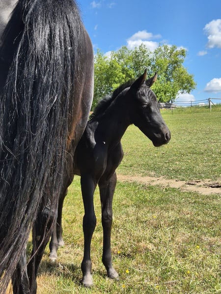 For Sale: American Quarter Horse Stallion – Black Gelding, Born 2025 We are offering a stunning American Quarter Horse stallion, born in 2025. Charly has a strong, muscular build. As a Quarter Horse, he is versatile and shows great potential for various Western disciplines. The stallion is healthy, well-socialized, and has been lovingly raised. With his friendly temperament and impressive appearance, he is truly eye-catching. Charly is growing up with his half-brother in a herd of mares, with 24/7 turnout and an open stable. The last photo shows his sire. If you are interested or would like more information, please feel free to contact me. Arrange a personal visit to meet the horse!