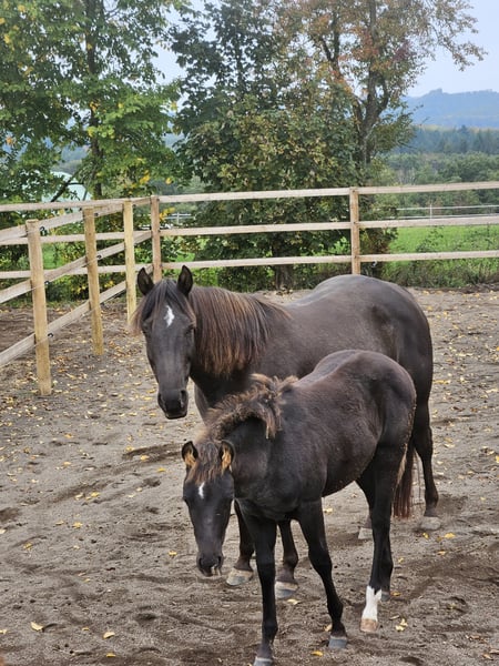 We are offering our Quarter Horse foal, born on May 24, 2025, for sale. This promising Quarter Horse foal is looking for a loving and nurturing home. He captivates not only with his stunning color but also with his friendly, curious nature. Thanks to his sire, Mr. Electric Spark, he possesses excellent foundational qualities and has the potential to become a versatile partner in both leisure and sport. He is being raised appropriately in a harmonious herd environment. Jax is handled daily, naturally knows the basics of foal manners, and is regularly introduced to the farrier. He is accustomed to farm life, including tractors, loaders, and dogs, and is not at all fazed by them. Jax can be moved to his new home at any time. He is only to be placed in the very best and responsible hands. His parents are Panel n/n, and he is expected to reach approximately 153 cm. He may be smoky black; we are still awaiting the results of the color test. The CoR for AQHA registration has been applied for, and of course, he is vaccinated and regularly dewormed. If you are interested, I look forward to hearing from you!