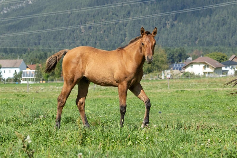 „Brandy“ - Quarter Horse Hengstfohlen Custom Gun Smoke x Lovers Magic Girl 5/2025 geboren, Farbe Dun sucht nach dem Absetzten im Herbst ein neues Zuhause. Er überzeugt durch sein korrektes Gebäude, seine gute ausgewogene Bemuskelung und seinen freundlichen Charakter. Er wächst in einer gemischten Herde auf großen Flächen auf, ist gut sozialisiert und kennt Tierarzt sowie Hufschmied. Auch seine 3 jährige Vollschwester (am vorletzten Bild) derzeit 155cm steht am Betrieb und zeigt sich sehr talentiert für Reining und Allaround. Wenn gewünscht darf „Brandy“ gegen Aufpreis auch zur weiteren Aufzucht bei uns bleiben.