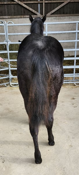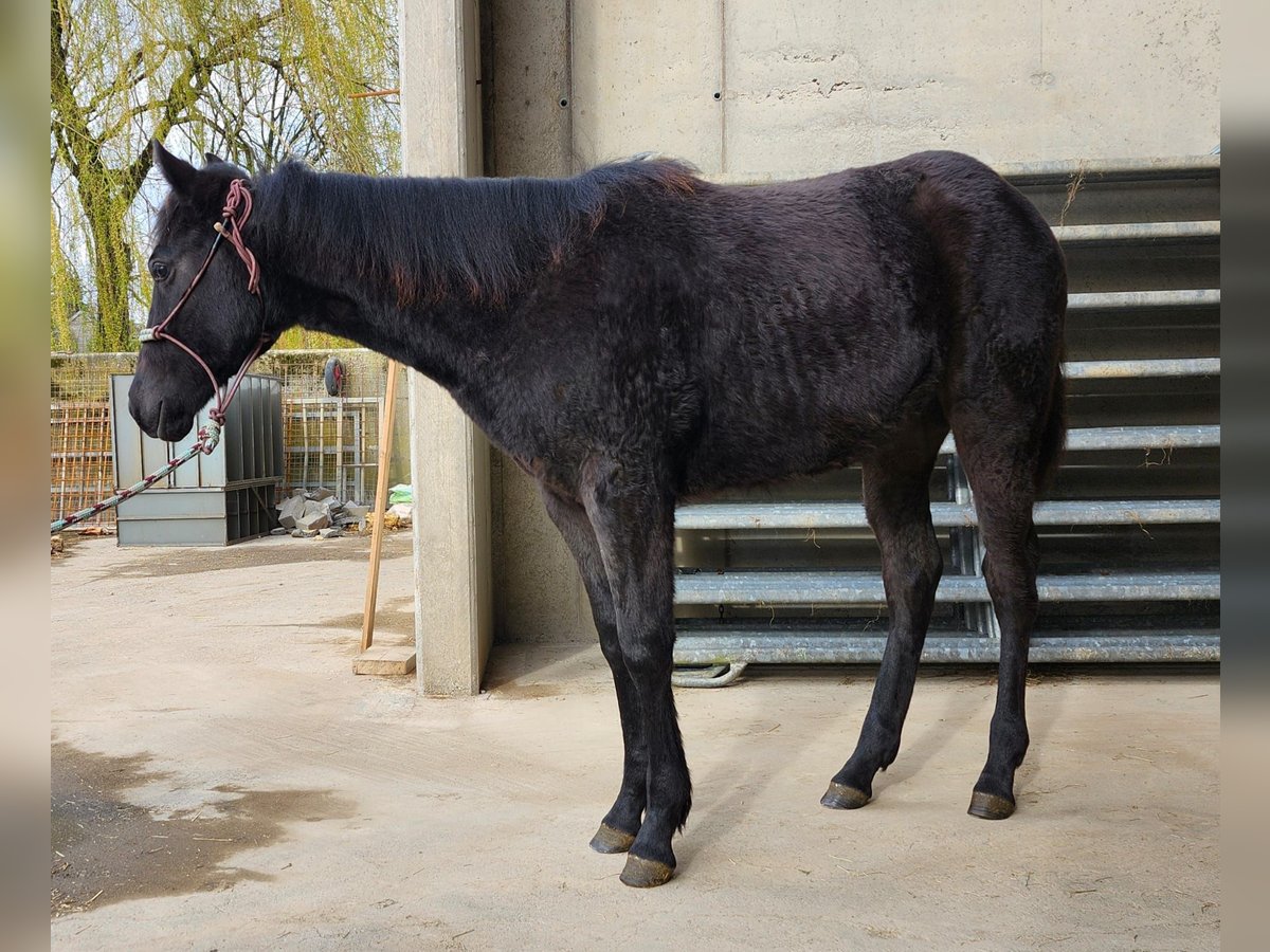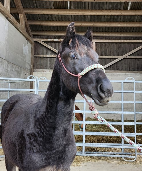 Drifts To The Future ist ein bildhübscher American Quarter Horse Hengstjährling, geboren am 05.06.2025. Er ist schwarz (black) mit nur wenigen Stichelhaaren an der Stirn und genetisch homozygot black sowie homozygot agouti. Die AQHA-Papiere sind beantragt, das zu erwartende Endmaß liegt bei ca. 162 cm. Der junge Hengst überzeugt durch ein korrektes Gebäude, eine sehr gute Entwicklung, ausgewogene Bemuskelung und starke Knochen. Midnight wird später auch größere Reiter problemlos abdecken können. Seine Grundgangarten sind gut und taktsicher, er lernt schnell und bringt ein ausgeglichenes, angenehmes Temperament mit. Charakterlich ist Midnight ein echtes Goldstück. Er ist sehr menschenbezogen, stets freundlich, ruhig und gelassen und meist der Erste, der einen am Weidetor begrüßt. Er möchte gefallen, ist sehr brav im Umgang und zeigt sich jederzeit kooperativ. Er wächst im Herdenverband auf, kennt das Fohlen-1x1, ist halfterführig und kennt sowohl Tierarzt als auch Hufschmied. Er ist gesund,regelmäßig entwurmt und 6-Panel n/n getestet. Abstammungsmäßig ist er etwas ganz Besonderes: Er ist der einzige Sohn von Drifts Chip in Europa und stammt aus der berühmten 6666 Ranch-Blutlinie, die weltweit für Vielseitigkeit, Leistungsbereitschaft und Rittigkeit bekannt ist. Damit ist er nicht nur für Freizeit und Turniersport, sondern auch für die Zucht hochinteressant. Ob als zukünftiges Showpferd, Sportpartner oder zuverlässiger Freizeitbegleiter - mit seinem Potenzial für verschiedene Disziplinen und seinem außergewöhnlich lieben Charakter ist Drifts To The Future ein echtes Versprechen für die Zukunft.