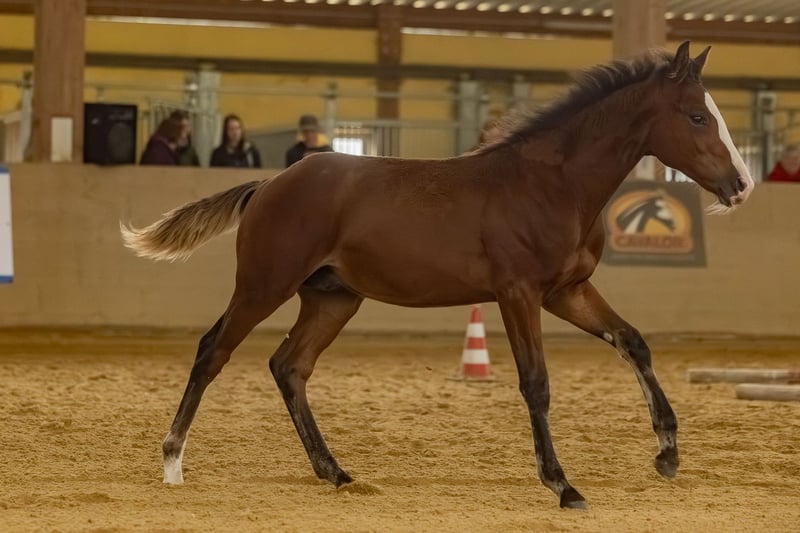 Super chices, sehr korrektes Hengstfohlen mit viel Ausstrahlung. Sein Vater, Redwhiteandblue Boon , war 3 und 4 jährig Cutting Futurity Champion in Italien und hat bereits sehr erfolgreiche Nachzucht produziert. Seine Mutter, eine Tochter von Cromed out Mercedes wurde erfolgreich in Reining geshowt. Und auch dieses Hengstfohlen zeigt schon jetzt sein enormes Potential ! DQHA Fohlenschau 1A Prämie