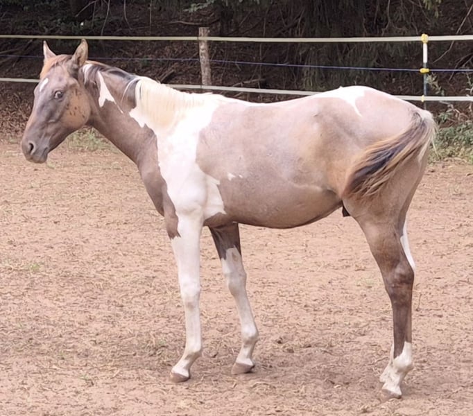 Zum Verkauf steht ein vielversprechender Quarter Horse Hengst, 11 Monate alt. Rasse: Quarter Horse Mix Geschlecht: Hengst Alter: 11 Monate Stockmaß: im Wachstum Farbe: 3 farbig gescheckt Equidenpass vorhanden, geimpft soweit Entwurmt. Der Hengst ist gesund, korrekt gebaut und zeigt ein starkes Fundament sowie viel Ausdruck. Er überzeugt durch ein freundliches, aufgewecktes Wesen und ist dem Menschen sehr zugewandt. Ein tolles Familienpferd. Nur in pferdegerechte Haltung abzugeben!