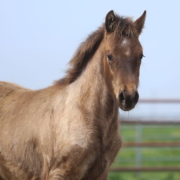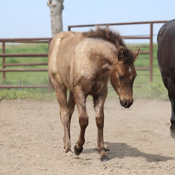 AQHA blue roan colt born: 9/27/2025 DOUBLE HOMOZYGOUS ! Smokey blue roan colt with a strong presence, solid conformation, and top-quality genetics. He is homozygous black, homozygous roan, and carries cream—meaning he will always pass on black-based color and roan, with extra color possibilities depending on the mare. Besides color, he’s built to stay sound and perform: a balanced frame, a clean neck and shoulders, a strong topline, good bone structure, and a powerful hip. He moves smoothly with natural balance and athletic ability, and he’s friendly, smart, and willing, with a curious attitude. A serious prospect for performance or ranch work, and a valuable breeding stallion in the future. This colt is one to add to your favorites list. Markings: Star and little white on the hind cornets. Genetics: Homozygous Roan (Rn/Rn), Homozygous Black (EE), and Heterozygous Cream (n/Cr)