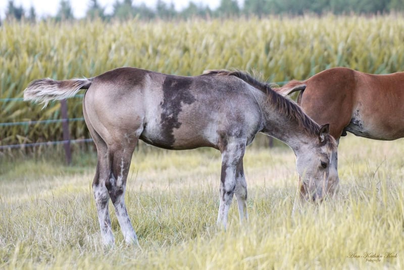 UW Dressed for You *sign* A 1.5-year-old colt by the successful Sharp Dressed Shiner / Shining Spark. Maternal lineage: Dun It for You / Hollywood Dun It. 5-panel N/N genetic testing. A promising young stallion with great potential. Perfect as a family horse and, of course, an absolute delight for the ambitious rider. SIGN is well-behaved in handling and has grown up in a large young stallion herd. He is excellently socialized. With his extraordinary coat markings, he is a real eye-catcher. If you want to learn more about this exceptional young gentleman, please get in touch to arrange a viewing. We look forward to introducing you to this outstanding reining and cutting prospect.