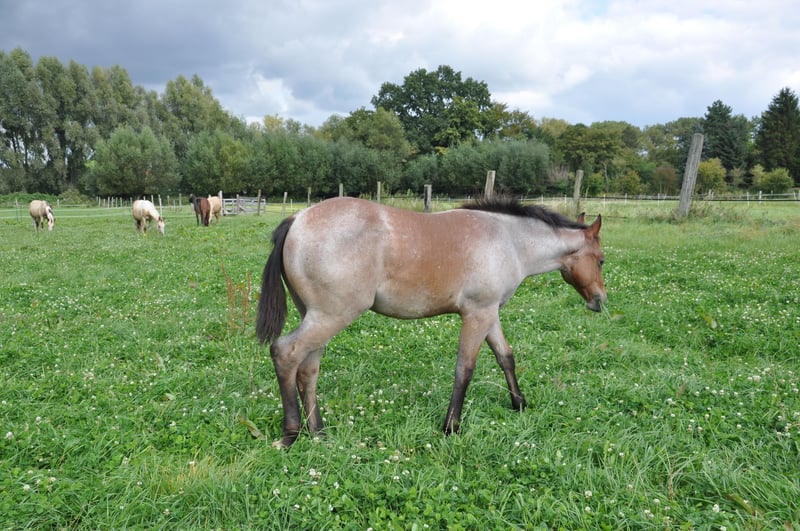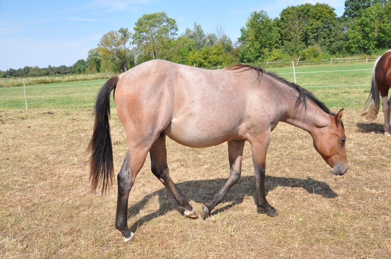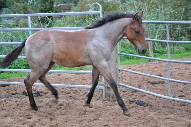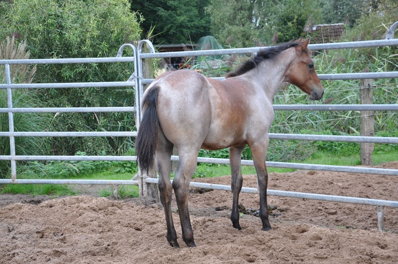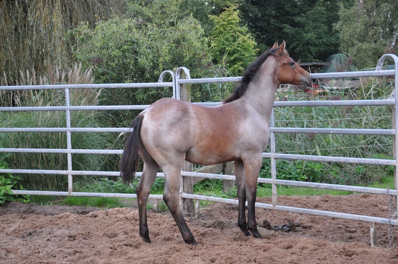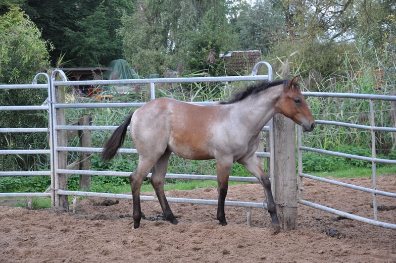 Very sweet young stallion with special charisma and charm. Great movement potential with correct conformation and straight legs. Kind, friendly and calm character. Great pedigree that promises a successful, reliable all-round horse. The sire: MJM Saltys Blue Ezra, a Hancock / Blue Valentine Fondation stallion The dam: Smartenup little Page out of BH Smart Solano, he earned AQHA points in 8 disciplines, European Champion, German Champion, multiple Allround Champion, Grand Champion Halter, NRHA Money Earner, AQHA World Show Qualifier, Reserve Champion, Germanys Best Quarter Horse 2009 He grows in a mixed herd, is vaccinated and has been wormed regularly.