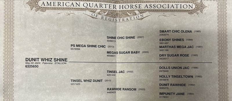 Caballo de raza Quarter Horse, semental 2024, de PS Mega Shine Chic