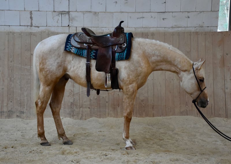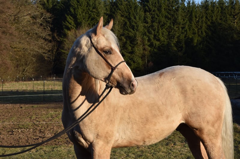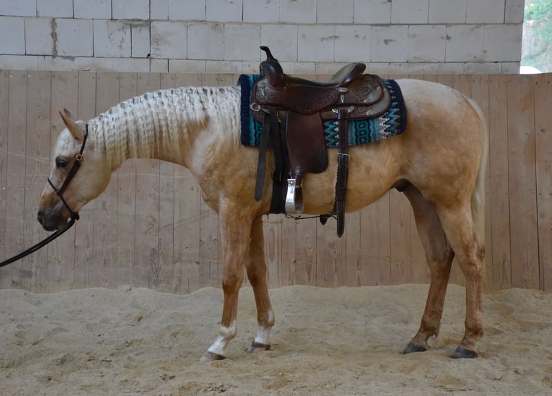 Zum Verkauf steht ein American Quarter Horse Hengst in Palomino, von PS Mega Shine Chic. Er ist aktuell ca. 150 cm groß, kräftig gebaut und besitzt ein großes, korrektes Gebäude. Altersgerecht aufgewachsen, brav und ruhig im Umgang. • NRHA Germany & NRHA Euro einbezahlt • 5-Panel N/N Weitere Bilder und Videos auf Anfrage. Besichtigung nach Absprache möglich.