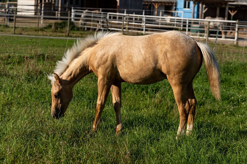 Smart Dressed Spook - wundervoller Quarter Horse Hengst, 4.2024 geboren mit einem geschätzten Endmaß von 150 cm, mit erstklassiger Abstammung und toller Farbe. Clark ist ein super Beweger mit einem freundlichen und sehr wachen Mind. Er besticht durch seine offene und interessierte Art. Hat das Fohlen ABC mit Hufe geben, Pflege, Halfterführtigkeit und höfliches Miteinander gelernt. Der Hengst ist alle 6-8 Wochen beim Schmied mit kleinen Korrekturen vorgestellt worden. Wurde regelmäßig entwurmt und dem Tierarzt vorgestellt. Die Jungpferde sowie die Mutterstuten werden mit bestem Heu sowie sehr hochwertigem Zuchtmineral/- futter versorgt und stehen 24/7 draußen auf Weide, Trail und befestigten Paddocks. Aufgewachsen ist er die ersten 6 Monate im Herdenverband mit anderen Stuten und Hengstfohlen und seit Ende des Monats mit seinem besten Buddy zur Aufzucht umgezogen. Clark ist ein Sohn vom erfolgreich geshowten Sharp Dressed Shiner, Topvererber mit Offspring earnings $ 70.000,00 und ein direkter Nachkomme von Shining Spark 10 Mio. EUR Sire und Smartly Dressed, eine Halbschwester von Taris Designer Genes nd A Vintage Smoke mit Offsprings earnings $ 300.000,00. Clarks Mutter ist eine Tochter von Best Spook aus Smart Spook 8 Mio. $ Sire und Best Stop einer Custom Chrome Tochter. Bei ihrem ersten Turnier mit 3 Monaten Training nach der Fohlenpause ist sie bei der EWU DS Aachen 2025 direkt platziert 1. Platz LK 1 jun Ranch Riding 75.0, 6. LK 1 jun Western Ranch Rail, 3./12. Q LK 2/1 jun Ranch Riding 72.0 / 71.0, 7. Q LK 2/1 jun Western Ranch Rail. Dam ARC Calbar Gal mit NRHA earnings ist eine direkte Snapper Cal Bar, NCHA LTE $ 250.000,00 und Enkelin von World Champion Be Aech Enterprise mit offspring earnings $ 1.345.000,00. Smart Dressed Spook ist für EWU JUPF, NRHA Germany und NRHA Euro einbezahlt. Wird gerne in ein Showhome abgegeben.