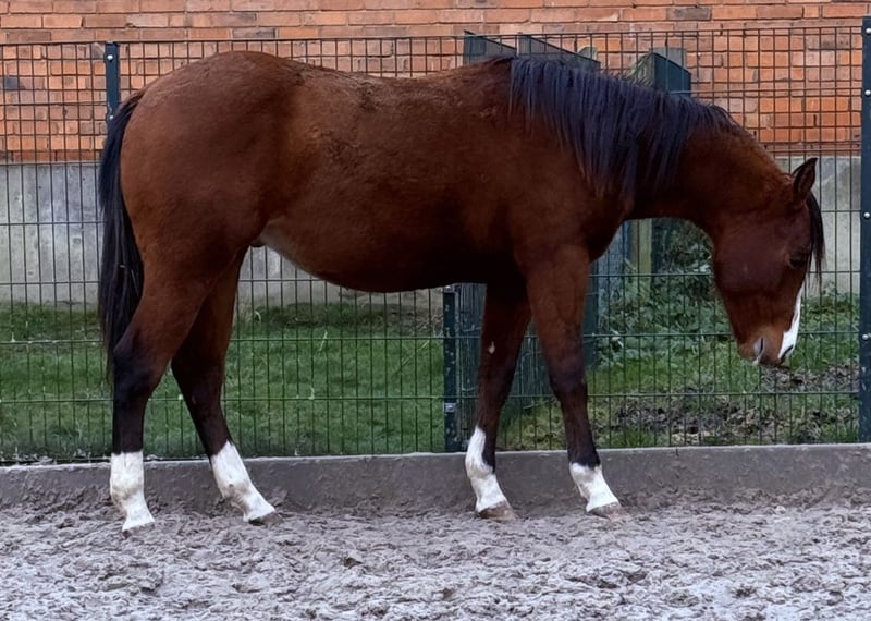 2024 Bay 5 Panel n/n AQHA / APHA Nrha Germany eingezahlt Auf Wunsch EWU Sire : Spooks Gotta Outfire ( Spooks Gotta Whiz x Custom Crome ) Newcomer Hengst aus den USA 🇺🇸 Dam : Yellow Melody ( Yellow Jersey x Smatin Off ) Blake ist eine echte Augenweide ! Absolut korrekt gebaut mit tollem Fundament und mega Optik. Er ist charakterlich super neugierig und dem Menschen sehr zugewandt. Lernt schnell und hat ein großen Will to please. Bisher absolut nicht hengstig und wächst artgerecht mit Kumpels im offenstall / Weide auf. Er wird großes Potential haben für den Reining Sport. Jedoch kann ich mir ihn durch seine absolut tollen Gängen auch super im Ranch Sport vorstellen. Ein Mega Kandidat für das EWU jungpferde Programm oder euer nächster Futurity Star ⭐️ Gerne in ein förderndes Zuhause 🏠 Direkt vom Züchter mit viel Liebe und Wissen aufgezogen und checkheft gepflegt.