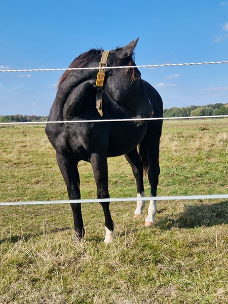 Treats N Diamonds - ein bildschöner, junger Quarter Horse Hengst mit hervorragendem Fundament, kräftigen Gelenken und sehr guter Bemuskelung. Er zeigt sich bereits jetzt weit entwickelt und gesund. Sein korrekter Körperbau, sein harmonisches Erscheinungsbild und seine tolle Farbe (black) machen ihn zu einem echten Eyecatcher mit Zukunftspotenzial - sowohl im Sport als auch im Freizeitbereich. 2024 geboren mit einem Endmaß von ca. 152 cm. Tristan wächst artgerecht in einer Hengstaufzucht auf und ist bestens sozialisiert. Er ist freundlich, neugierig, menschenbezogen und lernwillig. Tierarzt und Hufschmied kennt er bereits, ist halfterführig, altersgemäß geimpft und entwurmt. Seine Abstammung lässt keine Wünsche offen: Er entstammt einer erstklassigen Reining-Linie und ist NRHA Germany einbezahlt. Aber aufgrund seiner sehr guten Gangarten auch für Allroundklassen sehr interessant. Tristan ist ein Sohn von One Shiney Treat, ein Sohn vom 10,2 Mio Dollar Sire Shining Spark. One Shiney Treats Mutter, HAGANDAZ, ist eine Money earning& producing GRAYS STARLIGHT-Tochter. Sie gewann $49,289 in NCHA & NRCHA Events, und produzierte erfolgreiche Performance Nachzucht, mit insgesamt über $65.616 (NRHA, NCHA& NRCHA). Tristans Mutter, Miss Tiffany Chic, wurde erfolgreich geshowt und ist eine Puro Chic Tochter. Tristans Geschwister aus der gleichen Mutterlinie konnten sich bereits erfolgreich im Reining-Sport (Open) beweisen. Ein aktueller 6-Panel-Test liegt über die Eltern und zusätzlich durch einen eigenen Test vor - er ist N/N. Treats N Diamonds wird mit AQHA-Papieren und Equidenpass abgegeben. Dank seiner erstklassigen Reining-Abstammung und der NRHA Germany Einzahlung stehen ihm alle Wege offen - sei es im Sport, auf Turnieren oder als vielseitiger Freizeitpartner.