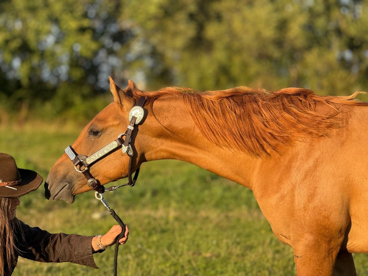 Red Smart Gun - ein bildschöner Quarter Horse Hengst, geboren am 30.04.2024, in der ausdrucksstarken Farbe Red Dun. Er wird ein geschätztes Endmaß von ca. 152 cm erreichen und überzeugt schon jetzt mit seinem kompakten, korrekt gebauten Körperbau und seinen vielversprechenden Proportionen. Seine elegante Erscheinung und sein ruhiger, ausgeglichener Charakter machen ihn zu einem echten Nachwuchstalent. Red wächst artgerecht in einer gemischten Herde mit viel Bewegung und Sozialkontakt auf. Dabei darf er in aller Ruhe unter besten Bedingungen groß werden - gesund, altersgemäß entwurmt und genetisch einwandfrei (6-Panel n/n). Im täglichen Umgang zeigt er sich äußerst menschenbezogen, aufgeschlossen, interessiert und sehr lernwillig. Red Smart Gun ist ruhig, unkompliziert, brav und zeigt sich bereits jetzt sehr kooperativ und artig. Das Fohlen-ABC beherrscht er, ist halfterführig und kennt das Hängerfahren. Auch in Bewegung weiß er zu beeindrucken: Seine schwungvollen, raumgreifenden Gänge versprechen ebenso viel wie seine hochkarätige Reining- und Cuttingabstammung. Diese genetische Grundlage gepaart mit seinem Wesen macht ihn zu einer genialen Kombination für Sport, Show oder anspruchsvolle Freizeitgestaltung. Mit Köpfchen, Cowsense und Stil bringt er alles mit, was es für eine erfolgreiche Zukunft braucht. Er ist ein Enkel von Colonels Smoking Gun und Lil Dry Peppy. Red Smart Gun wird direkt vom Züchter abgegeben - ein vielversprechendes Nachwuchspferd mit besten Anlagen für Reining, Ranch Riding oder Allround. Ein echter Rohdiamant für Menschen, die Wert auf Qualität, Charakter und Perspektive legen.