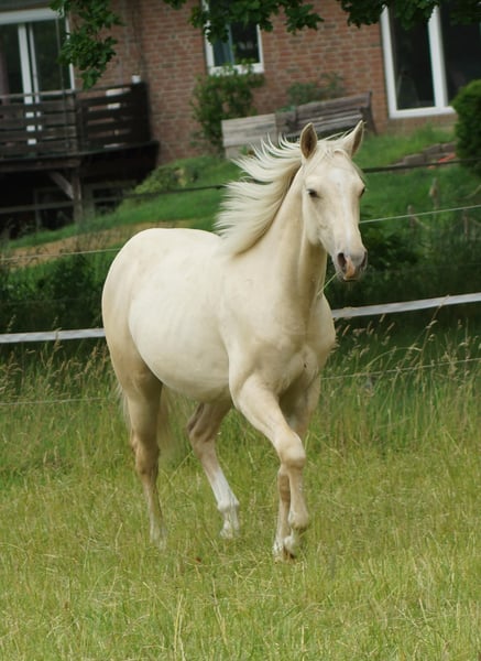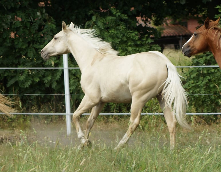 Perspectiva para Futurity de Reining Smart Like Ice, conocido como Spencer, es un hermoso semental hijo del exitoso semental de Reining de EE.UU., SG Frozen Enterprize, de una madre Smart Like Juice x Hangten Peppy/Hollywood Dunit. Tiene una estructura correcta, es muy robusto y presenta el color soñado Palomino, igual que su madre. Sus movimientos son muy atléticos y demuestra de manera juguetona su talento para detenerse, girar y cambiar de galope. Padre: SG Frozen Enterprize Madre: Juice Likes To Stunt, por Smart Like Juice x Hangten Peppy/Hollywood Dunit 5 paneles N/N, IMM N/N. *2024 Nuestros potros crecen en un grupo de manada con la yeguada y son desparasitados regularmente y presentados al herrador. Más información en www.brallentin-quarterhorse.de