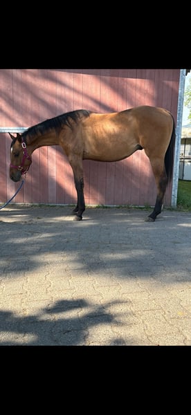 SR Reminics Dun It – semental de Quarter Horse de 3 años en color especial Dun. ¡Carácter, talento y color: este semental reúne todo lo que el corazón de un reiner desea! SR Reminics Dun It es un hermoso semental de 3 años en el popular color especial Dun, que convence en todos los aspectos con su expresión, su talento y su correcta conformación. Proviene de un excelente linaje de Reining y ya muestra hacia dónde puede llevarlo su viaje: deporte, exhibición o cría, ¡todo es posible! ✅ Edad: 3 años ✅ Color: Dun ✅ Raza: Quarter Horse ✅ Entrenamiento: montado ✅ Área de uso: Reining, Allround, cría Ya está montado con 3 meses de entrenamiento básico, se muestra dispuesto a aprender, cooperativo y atento. Se mueve en el popular estilo Low-Headed como un Dun It. Sus movimientos son suaves y potentes, exactamente lo que se desea para el deporte de Reining o para un uso versátil. Con su correcta base, su expresión noble y su sólida formación, SR Reminics Dun It también cuenta con todos los requisitos para ser un semental de cría, tanto visual como genéticamente, es una ganancia para cualquier cría. Si está interesado y desea más información, esperamos su contacto.