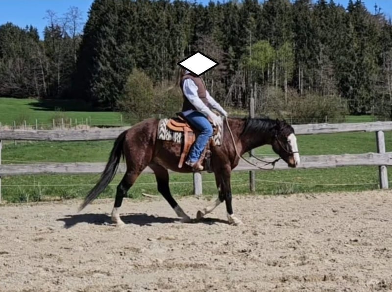 Flashy Gotta Gun - gut gebauter, lieber Quarter Horse Hengst, 2022 geboren mit einem Endmaß von ca. 155 cm, mit super Mind. Er überzeugt nicht nur durch seinen Charakter, sondern auch durch das tolle Reitgefühl, was er einem bietet. Flashy ist immer bemüht alles richtigzumachen, sehr lieb, brav und gut erzogen. Der Hengst wuchs unter besten Bedingungen mit allerbestem Futter und Mineralien auf. Ist 6-Panel n/n. Steht im Offenstall in einer Hengst/Wallach Herde und ist bisher nicht hengstig. Er hat ein kompaktes, kräftiges Gebäude mit toller Oberlinie. Flashy geht unterm Sattel die drei Grundgangarten. Kennt Bodenarbeit und geht sehr brav als Handpferd mit ins Gelände. Letztes Jahr hat er 2-mal gedeckt, 1 Fohlen ist vor Ort zu besichtigen. Der Hengst hat eine sehr gute, alte Reining Abstammung. Sein Vater, Black Gotta Gun, wurde erfolgreich geshowt (LTE: 11.000$). Flashys Mutter ist Raye Peponita gezogen. Bei der AKU zeigten die Röntgenbilder eine leichte Veränderung, weswegen er unter Wert abgegeben wird. Er zeigte nie Lahmheiten etc. und kann als Freizeitpferd genutzt werden.