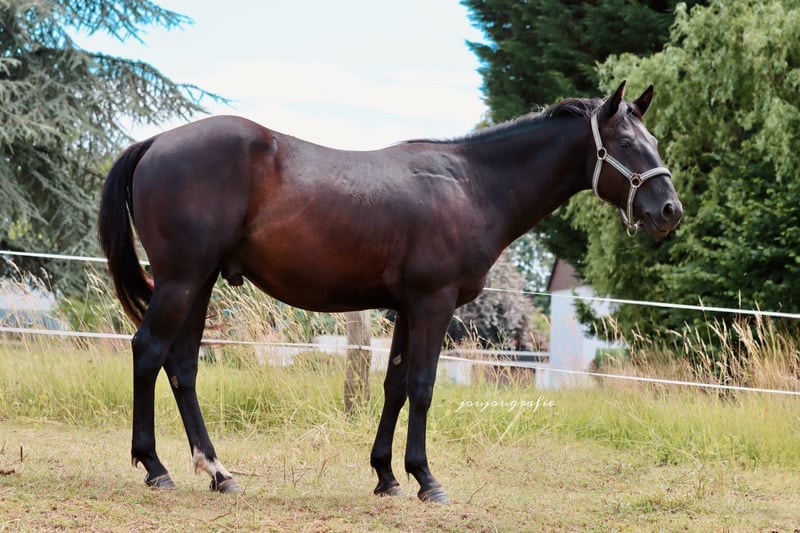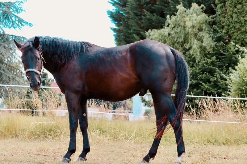 Caballo de raza Quarter Horse, semental, de color negro especial