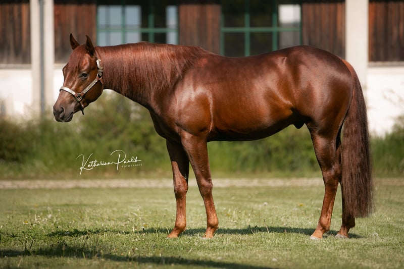 Elite Shiner ist der letzte Sohn von Elite Eldorado (Hall of Fame) und Shiney Top Lena. Er stammt aus zwei alten bewährten Blutlinien die aus der Sportzucht nicht mehr wegzudenken sind. Elite Shiner ist 7 Panels N/N getestet. Er ist ein athletischer Beweger und sehr Chic. Absolut Nervenstark Stockmass 148cm Es ist nur Gefriersperma von ausgezeichneter Qualität erhältlich.