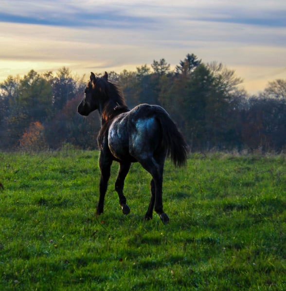 Just Be Blue Sky - dieses bildhübsche Quarter Horse Hengstfohlen, geboren am 9.4.2025, beeindruckt in der auffälligen Farbe Blue Roan und wird voraussichtlich ein Endmaß von 150 bis 154 cm bekommen. Blue ist über seine Eltern 5-Panel n/n. Er wächst gesund und artgerecht im Herdenverband mit anderen Fohlen auf. Bei Abgabe wird er altersgemäß geimpft und entwurmt sein. Kennt dann den Tierarzt und den Hufschmied. Mit seinem lieben Charakter verzaubert er die Umwelt. Ist verschmust sowie cool und erkundigt gerne seine Umwelt. Blue wird täglich gehändelt und benimmt sich dabei brav und unkompliziert. Beim Toben zeigt er jetzt schon seine tollen Bewegungen. Dank seiner guten Allround Abstammung wird er sich voraussichtlich sehr gut für den Sport oder/und als treuen Freizeitbegleiter eignen. Wird mit vollen AQHA Papieren und Equiden Pass abgegeben.