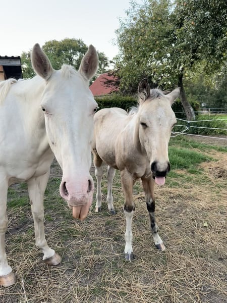 Unser wunderschöner Buck sucht ab November ein 5 ⭐️ zuhause. Geb: 29.05.2025 Vater : Doolins Candy Bar ( Paint) Mutter : Star Little Moon ( Quarter ) Buck ist super neugierig , schlau und ein echter Hingucker . Typisch für die „Doolin“ Fohlen ist sein Charakter . Er kennt das Fohlen ABC , gibt alle Hufe , kennt das Halfter & hat einfach gar keine Angst und ist immer entspannt . Er hat nun schon ein tolles , stabiles Exterieur was auf eine weiter tolle Entwicklung hoffen lässt . Buck wird eine tolle Größe bekommen und durch sein tolles Fundament auch später größere Leute gut abdecken .