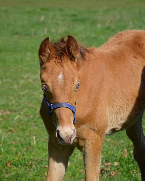 Potro de semental Amber Champagne, estatura final aproximadamente 1,55 m.