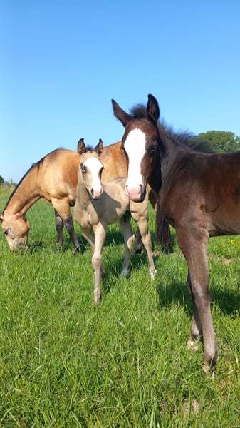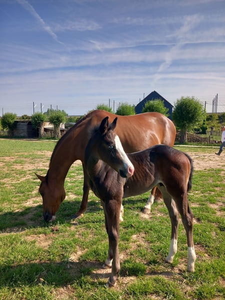 ⭐️MG NIGHT LONE GUNS⭐️ 🎂born May 24, 2025 🇧🇪 from Belgium 🇧🇪 🐴Quarter Horse AQHA registered 👩❤️💋👨 BY LONE GUNS GUINNES & BLACKS CONASFOOTWORK 🇬🇧🇬🇧🇬🇧🇬🇧🇬🇧🇬🇧🇬🇧🇬🇧🇬🇧🇬🇧🇬🇧🇬🇧🇬🇧🇬🇧🇬🇧 If you're looking for a little companion who will bring joy to your family, Night is the one for you! Curious, playful, affectionate – a true cuddlebug full of love! His black coat, two beautiful blue eyes, and the wide, well-shaped blaze give him incredible charm and a touch of mystery. Night has a lovely build and already shows excellent balance for his age. Just like his brothers and sisters, his easy-going nature makes him a perfect horse for the whole family, and he will be very versatile! Reservations possible, available after weaning. 🇫🇷🇫🇷🇫🇷🇫🇷🇫🇷🇫🇷🇫🇷🇫🇷🇫🇷🇫🇷🇫🇷🇫🇷🇫🇷🇫🇷🇫🇷🇫🇷🇫🇷 Si vous cherchez un petit compagnon qui fera le bonheur de votre famille, Night est fait pour vous ! Curieux, joueur, câlin, un véritable petit pot de colle rempli d'amour! Sa couleur noire, ses 2 beaux yeux bleus, sa liste large et bien dessinée lui donne un charme incroyable et un côté mystérieux. Night a une belle morphologie et présente déjà un très bel équilibre pour son âge. Comme ses frères et sœurs, son caractère facile en fera un excellent cheval pour toute la famille et sera très polyvalent! Réservation possible, disponible dès son sevrage. 🇱🇺🇱🇺🇱🇺🇱🇺🇱🇺🇱🇺🇱🇺🇱🇺🇱🇺🇱🇺🇱🇺🇱🇺🇱🇺🇱🇺🇱🇺🇱🇺🇱🇺🇱🇺 Als je op zoek bent naar een klein maatje dat jouw gezin gelukkig zal maken, dan is Night precies wat je zoekt! Nieuwsgierig, speels, aanhankelijk – een echte knuffelkont vol liefde! Zijn zwarte kleur, twee prachtige blauwe ogen, en de brede, mooi gevormde bles geven hem een ongelooflijke charme en een mysterieus tintje. Night heeft een mooie lichaamsbouw en vertoont nu al een uitstekende balans voor zijn leeftijd. Net als zijn broers en zussen heeft hij een makkelijk karakter, wat hem tot een uitstekend familiepaard maakt dat bovendien zeer veelzijdig inzetbaar zal zijn. Reservering mogelijk, beschikbaar na het spenen.