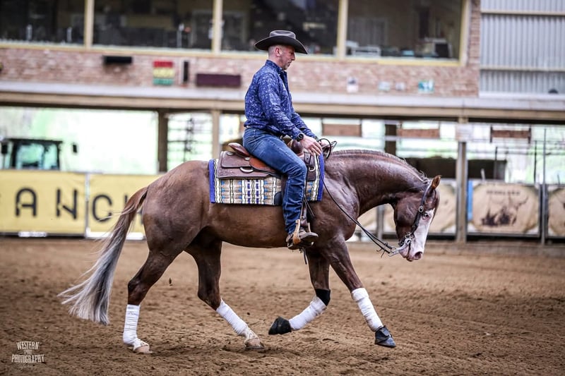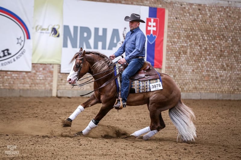 We proudly present an exceptional stallion who combines the genetics of two icons of the global reining scene – the famous Colonels Shining Gun and the legendary Einstein Revolution. This horse represents the perfect blend of traditional top-level reining bloodlines with a modern sport type and an outstanding temperament.This stallion stands out with his stunning buckskin coat, a distinctive blaze, and striking blue eyes that capture attention at every show. His correct, athletic conformation, agility, and excellent maneuvers make him a horse with tremendous potential both in sport and breeding. In the arena he shows courage, precision, and a huge willingness to work. His spins are lightning-fast, his sliding stops are long and smooth, and every maneuver is performed with natural ease and class. A stallion competing in international arenas. PANEL 6 N/N