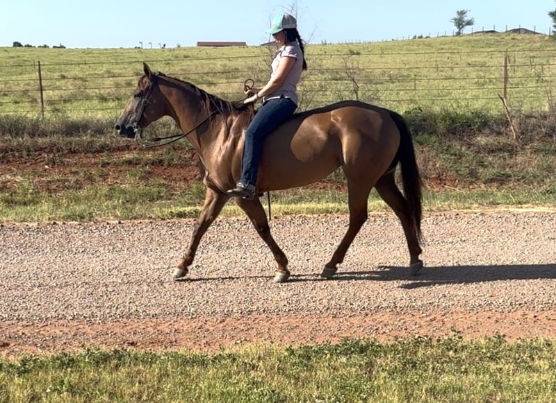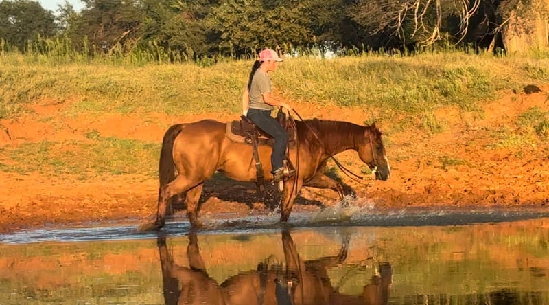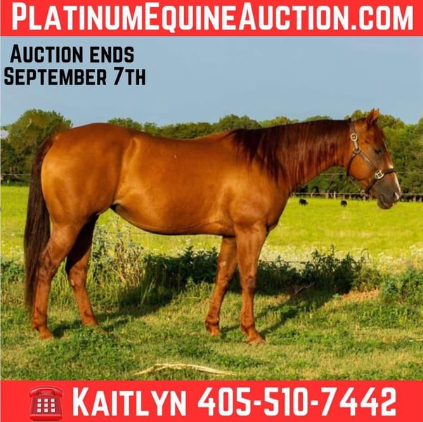 ONLINE AUCTION Place your bids at www.PlatinumEquineAuction.com Starting Bid $3500 Auction ends September 7th, 2025 Need a new saddle? Check out White Rock Saddles on our website or Facebook Pixel Gun “Kali” – 9-Year-Old ApHC Registered Mare standing 14.3h. She is an own daughter of Chics Loaded Gun out of a Smart Chicolena mare. If you’ve been searching for your true heart horse, look no further—Kali is the one you’ve been waiting for. Kali is the kind of mare you can trust in every situation. Reliable, easy-going, soft, and kind, she has been a teacher, a partner, and even the best therapist around the barn. She is safe, seasoned, and ready to make someone’s dreams come true. On the trails, Kali is steady, sure-footed, and unbothered by wildlife, traffic, dogs, or surprises. She crosses water, steps over logs, and takes every adventure in stride. She has been kid-tested and mother approved, making her a partner you can put anyone on with confidence. In the arena, Kali shines with natural talent and willingness. She floats beautifully, stops deep, spins, rolls back, catches both leads, and has a smooth, dream-worthy lope. She will side pass to open and close gates and handles herself like a pro. She has been used to push cattle at ropings, turn back in the cutting pen, pony colts, and started on live cattle and the flag. Kali is gentle, safe, and people-oriented. She is easy to catch, saddle, bridle, and haul. She has no quirks, no vices, and requires no maintenance. She is an easy keeper, does well in a mixed herd, is great for the farrier, stands quietly tied, and will even step over to a mounting block for you. Whether you are looking for a family-safe partner, a teacher for yourself or your kids, a reliable trail horse, or a versatile ranch riding prospect, Kali will step up and check every box. Horses like her don’t come around often—she is truly a treasure and ready for her next chapter. Located in Elk City, OK. Vet exam is on file. Contact Kaitlyn with Lazy H Equine 405-510-7442 if you have any questions. ONLINE AUCTION Place your bids at www.PlatinumEquineAuction.com Starting Bid $3500 Auction ends September 7th, 2025 Need a new saddle? Check out White Rock Saddles on our website or Facebook