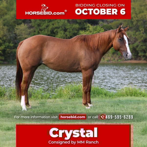 🍂 𝓐𝓾𝓽𝓾𝓶𝓷 𝑨𝑳𝑳 𝑺𝑻𝑨𝑹 𝑳𝑰𝑵𝑬𝑼𝑷 🍂 Happening now thru MONDAY | OCTOBER 6th - Available EXCLUSIVELY on HorseBid's website! For more details and to register visit: www.Horsebid.com CONSIGNOR CONTACT: MM Ranch 469-595-6289 LOCATION: Forney, TX BREED: Quarter Horse REGISTERED: No COLOR: Red Dun HEIGHT: 14.3 AGE: 9 GENDER: Mare Crystal is a 💣bombproof💣 9 year-old red line back dun mare standing a handy 14.3 hands, and she’s every bit as striking as she is talented. She gets her name from her one crystal ice blue eye that gives her just a touch of sparkle. Plus with her bold dorsal stripe, and tiger-striped legs, she has that classic dun factor that makes her stand out any where she goes. She’s balanced, shapey, and feminine, with bright intelligent eyes that reflects both style and sensibility. 👉🏼👉🏼 She crosses water and rough terrain without hesitation, catches both leads with ease, and stays soft and collected in the bridle. She is fancy. She rides bridleless and bareback too if want, just proving her honesty and willingness to please. 👏🏼👏🏼 She’s been used at the sale barn, giving her valuable real-world exposure, and she watches a cow naturally and with plenty of feel. Easy to catch, saddle, bridle, haul, and handle, she’s as straightforward and user-friendly on the ground as she is in the saddle. There’s no fuss, no guesswork with her. She’s “really nice” doesn’t even do her justice; she’s downright exceptional. Crystal is the total package: the kind that is sharp, stylish, and smart, yet quiet and 100% trustworthy. She is safe for any age or level of rider. Did I mention she is bombproof. Absolutely nothing phases this girl. 100% sound in every way.