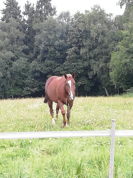 Verkaufe American Quarter Horse Stute Zum Verkauf steht eine wunderschöne American Quarter Horse Stute, geboren im Jahr 2016. Rubia präsentiert sich in einem eleganten Kupfer Farbton (typisch King Ranch Pferde) und hat ein Stockmaß von 152 cm. Rubia ist ausschließlich als Freizeitpferd geritten worden. Sie ist eine der wenigen Nachkommen, die noch MR SAN Peppy auf dem Papier stehen hat.