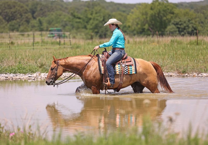 ONLINE AUCTION Place your bids at www.PlatinumEquineAuction.com Starting Bid $3500 Auction ends August 18th, 2024 Need a new saddle? Check out White Rock Saddles on our website or Facebook! If you’re looking for a big, stout, ranching and roping type horse, “Lena” is your gal! This mare is from the renowned Pitzer ranch and is sired by Poco Dot Lena. Her grandsire is the legendary “Rooster” (Gallo Del Cielo), and her papers are full of greats all the way back. On the bottom side, she boasts a lot of foundation blood like Joe Jack Red that gives her the incredible bone and foot she carries! This beautiful dun mare is very amateur friendly and has been ridden by everyone, including grandma and the kids. She’s great on obstacles and has a nice handle on her. Lena has lots of experience around the farm and on the trails. We love her ability to tackle new situations with confidence! She’s quiet and steady, but can stop on a dime or whip out a turn as fast as you’d like. Lena can spin, sidepass, drag logs & tarps, cross water and bridges with surefootedness. You won’t have to deal with any nonsense from this girl. She doesn’t get cinchy or buck with time off. She’s comfortable being ridden bareback and in a halter. Super easy to catch. Ties great. Stands for the farrier. Trailer loads perfectly. The owners have had her since she was a weanling and she’s been loved and cared for by one family. We’ve spent a lot of time working on and around Lena and can attest that she’s one special mare. She’s incredibly talented and is ready to go any direction. AQHA Ranching Heritage eligible! Can easily be registered with ABRA to show in an even wider variety of events. She’s 100% sound and just passed a PPE with no issues. No vices. Watch the video to see all this mare has to offer! For more info contact Zacharias Horsemanship Sid 715-416-1502 Located in Adair, OK. ONLINE AUCTION Place your bids at www.PlatinumEquineAuction.com Starting Bid $3500 Auction ends August 18th, 2024 Need a new saddle? Check out White Rock Saddles on our website or Facebook!