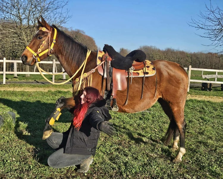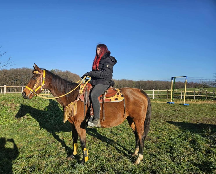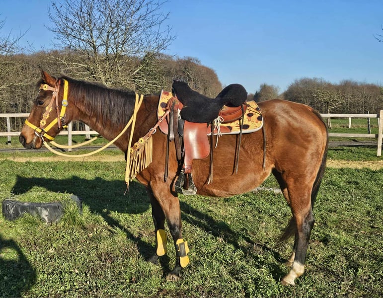 Jument Quarter Horse avec papiers TENDER HOPE Âgée de 9 ans Taille : 1,52 m AKU inclus Pass E inclus – Calme et docile à la monte et au manège – Amicale et équilibrée – Très proche de l’humain et facile à gérer – Connaît le box à aire ouverte et la vie en troupeau – Prête pour d’autres activités de loisir Idéale pour : Loisirs, balades et familles avec expérience équestre Nos chevaux : – Régulièrement vermifugés – Soignés par le maréchal-ferrant et l’ostéopathe Notre boutique : Selles western, brides, accessoires Transport et accessoires organisés à prix avantageux sur demande Notre service : ✅ 3 mois de droit d’échange ✅ Test de monte : 35 €, chaque cheval supplémentaire 25 € (déduit si achat le même jour) ✅ Remise immédiate de 100 € pour récupération ou transport le jour même ✅ Conseil personnalisé et honnête Pour toute demande, merci de nous contacter uniquement par téléphone : 0171 – 4001968 Disponible tous les jours de 8h à 20h ⚠️ Pas d’e-mails ni WhatsApp ⚠️ Toutes nos informations sont données à titre indicatif, sans garantie
