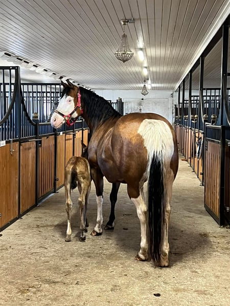 Gunnerbelle ist eine bildhübsche Quarter Horse Stute, geboren im Jahr 2015. Sie präsentiert sich in der besonderen Farbe Bay Splash (SW1 + SW2) und fällt zusätzlich durch ihre zwei blauen Augen ins Auge. Mit einem Stockmaß von ca. 147 cm ist sie kompakt gebaut und dabei korrekt und harmonisch im Exterieur. Genetisch ist sie 5-Panel n/n getestet. Charakterlich überzeugt Gunnerbelle auf ganzer Linie. Sie ist sehr lieb, menschenbezogen und zeigt sich stets freundlich sowie angenehm im Umgang. Durch ihre unkomplizierte Art ist sie einfach zu händeln und auch für Anfänger geeignet. Unter dem Sattel zeigt sie sich brav und zuverlässig, besonders im Gelände. Im täglichen Handling ist sie bestens erzogen. Sie kennt sowohl Hufschmied als auch Tierarzt, geht problemlos auf den Anhänger und ist sowohl an Herdenhaltung als auch an die Box gewöhnt. Besonders hervorzuheben ist ihre Qualität als Zuchtstute. Gunnerbelle verfügt über eine erstklassige Reining-Abstammung (Colonels Lone Gun x Roseable v. Inwhizible) und hat sich bereits als hervorragende Mutter bewiesen. Sie bringt Fohlen in sehr guter Qualität und gibt ihre positiven Eigenschaften zuverlässig weiter, sodass ihre Nachkommen sich als tolle, leistungsbereite Pferde entwickeln. Aktuell ist sie tragend für das Jahr 2026 von MS Gunners Cashflow, einem homozygoten Splash 1 Hengst. Gunnerbelle wurde geritten und besitzt eine solide Reining-Ausbildung und ist total brav im Gelände. Wird jedoch als Zuchtstute abgegeben. Sie ist ein echtes Juwel für die Zucht und eine wertvolle Bereicherung für jeden Zuchtbestand.