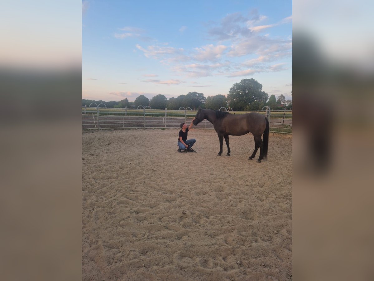 Aufgrund persönlicher Veränderungen bin ich auf der Suche nach neuen Menschen für meine wunderschöne, fast 11jährige Quarter Horse Stute "Ellie MIJ Steeldust", in der Sonderfarbe "grulla". Sie ist freizeitmäßig Western geritten und wurde von meiner Tochter regelmäßig gesprungen. Ellie wird regelmäßig alleine und in der Gruppe ausgeritten. Außerdem läuft sie sicher als Handpferd mit. Ellie hat ist enorm trittsicher und hat viel Spaß an Trail- und Geländeübungen. Sie lässt sich gut verladen und zeigt keine Schwierigkeiten beim Schmied, Zahnarzt, Tierarzt oder Osteopathen. Ellie braucht anfangs ein wenig Zeit, um sich auf neue Situationen und Menschen einzustellen. Sie ist unglaublich verschmust und sehr freundlich Menschen gegenüber. Sie lebt auf einem Hof mit viel Betrieb und kennt Kinder (auf Schaukeln, Rädern und Trettreckern), Hunde, Radlader, Vereinsfeiern mit Verkleidungen, etc. Da sie sich fest an einen Menschen bindet, ist sie nicht für einen Schulpferdebetrieb geeignet. Ihr gesamtes Equipment kann optional erworben werden: Westernsattel Springsattel 2 Trensen Winterdecke ... Preisvorschläge sind willkommen, ebenso ein Kennenlernen, um zu schauen, ob man zueinander findet. Da mir Ellie sehr am Herzen liegt, wünsche ich mir für sie einen Menschen, der sich mit ihr in Ruhe zu einem tollen Team entwickeln möchte.