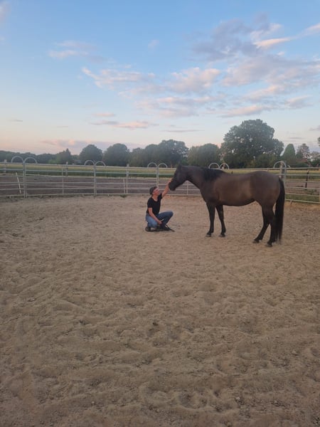 En raison de changements personnels, je suis à la recherche de nouvelles personnes pour ma magnifique jument Quarter Horse presque âgée de 11 ans, "Ellie MIJ Steeldust", de couleur spéciale "grulla". Elle a été monté en loisir en style western et a été régulièrement sautée par ma fille. Ellie est régulièrement sortie en balade seule ou en groupe. Elle marche également en main en toute sécurité. Ellie est très sûre d’elle sur ses pas et prend beaucoup de plaisir à faire des exercices de trail et en terrain varié. Elle se laisse facilement charger dans le van et ne montre aucune difficulté lors des visites chez le maréchal-ferrant, le vétérinaire, le dentiste ou l’ostéopathe. Au début, Ellie a besoin d’un peu de temps pour s’adapter à de nouvelles situations et à de nouvelles personnes. Elle est incroyablement câline et très amicale avec les humains. Elle vit dans une ferme très animée et connaît les enfants (sur balançoires, vélos et trottinettes), les chiens, les chargeurs sur chenilles, les fêtes de club avec déguisements, etc. Étant très attachée à une personne, elle ne convient pas pour une pension école d’équitation. Tout son équipement peut être acheté en option : - Selle western - Selle de saut - 2 mors - couverture d’hiver - ... Les propositions de prix sont les bienvenues, tout comme une rencontre pour voir si le courant passe. Étant très attachée à Ellie, je souhaite qu’elle trouve une personne qui souhaite prendre le temps de développer une belle complicité avec elle et former une équipe harmonieuse.