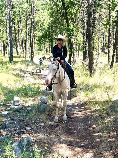 Daisy is a gentle, calm mare with a sweet disposition. She has basic training in Western pleasure and trail riding. Daisy is in excellent health, with up-to-date vaccinations. Current on Coggins, tetanus, and flu/rhino Rider experience preferred, but not necessary. Secure stall or pasture required. No specific equipment required. Two references required.