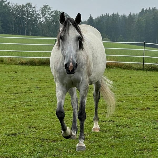 🐎 Ein Pferd fürs Herz – zuverlässig, ehrlich & gelassen 🐎 Manche Pferde geben einem vom ersten Moment an das Gefühl von Sicherheit und Vertrauen – genau so eine ist diese 11-jährige Quarterhorse x Tersker Stute (ca. 1,58 m, Schimmel). Sie ist ein wahres Goldstück im Gelände: ruhig, nervenstark und absolut zuverlässig. Ob in der Gruppe oder alleine unterwegs – sie bleibt gelassen und gibt ihrem Reiter jederzeit ein gutes Gefühl. Deshalb ist sie auch ideal als Freizeit- oder Wanderreitpferd, mit dem man einfach losreiten und den Kopf frei bekommen kann. Am Boden zeigt sie sich aufmerksam, fein und motiviert. Die Bodenarbeit macht ihr sichtbar Freude, und auch erste Einblicke in die Zirzensik hat sie mit Neugier und Spaß angenommen. Sie arbeitet gerne mit dem Menschen zusammen und ist dabei stets freundlich und kooperativ. Im täglichen Umgang ist sie brav, unkompliziert und verlässlich, außerdem verladefromm. Sie hatte bereits zwei Fohlen und ist gechippt, geimpft sowie regelmäßig entwurmt. 5 Panel Test N/N Diese Stute sucht keinen Job, sondern einen Menschen, der ihr Vertrauen schätzt und mit ihr viele entspannte Stunden verbringen möchte. 📍 Standort: 87767 Niederrieden 💰 Preis: 8.500 € ohne Equipment 10.000 Euro mit Equipment (Sattel Triple w platinum)