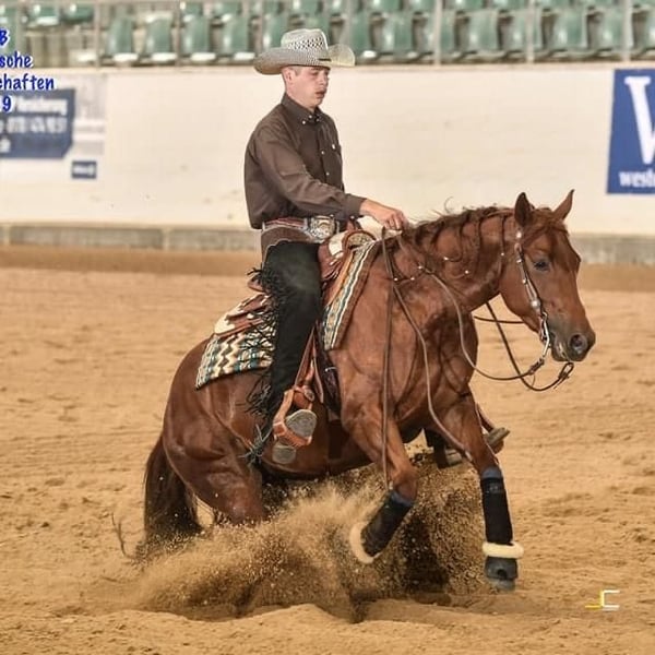 Zum Verkauf steht eine 2015 geborene, äußerst qualitätsvolle AQHA Quarter Horse Stute in der Farbe Chestnut mit erstklassiger Reining-Abstammung und eigener sportlicher Leistung. Als Trainer biete ich sie schweren Herzens an, da ich ihr züchterisch aktuell nicht den Rahmen geben kann, den diese Blutkombination verdient. ⸻ 🔬 Abstammung – genetisch hochinteressant Vater: Hollywoods Tinsel Town Einer der international etabliertesten Reining-Vererber mit enormer Nachzuchtleistung und beständiger Wertentwicklung.NRHA 4 Million Dollar Sirene. Mutter: Shesa lota nic Selbst sportlich erfolgreich und sehr gute Verderber. Diese Stute vereint bewährte Performance-Genetik mit moderner Athletik, Stop-Qualität, Schnelligkeit und hoher Rittigkeit. ⸻ 🏆 Eigene Leistung • Futurity-Finalistin als 3-Jährige • professionell ausgebildet • Open-Niveau • komplett gesund Sie ist kein Anfängerpferd – sie wurde fein ausgebildet und möchte entsprechend korrekt geritten werden. Mit gutem Reiter oder im Training zeigt sie ihre ganze Qualität und Leistungsbereitschaft. Ready to Show. ⸻ 🧬 Zuchtperspektive Aufgrund: • ihrer hochkarätigen Abstammung • ihrer eigenen sportlichen Vorstellung • ihres korrekten, modernen Gebäudes • ihres klaren, leistungsbereiten Charakters stellt sie eine äußerst attraktive Option für ambitionierte Zuchtprogramme dar. Gerade in Kombination mit passenden, modernen Hengsten bietet sie enormes Potential für leistungsstarke Nachzucht im Reining-Sport. ⸻ 🌿 Charakter & Exterieur Sehr korrekt gebaut mit starker Oberlinie und solidem Fundament. Klar im Kopf, leistungsbereit, ehrlich im täglichen Training. ⸻ Abgabe ausschließlich in fördernde Hände – bevorzugt an Züchter oder ambitionierten Sportstall. Kein Notverkauf. Weitere Informationen, Videos und detaillierte Abstammung gerne bei ernsthaftem Interesse.